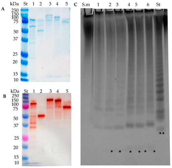 - Laemmli, U.K. Cleavage of Structural Proteins during the Assembly of the Head of Bacteriophage T4. Nature 1970, 227, 680–685. [Google Scholar] [CrossRef] [PubMed]