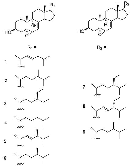 Structure of 5α,6α-epoxysterols 1–9 isolated from Ircinia echinata.