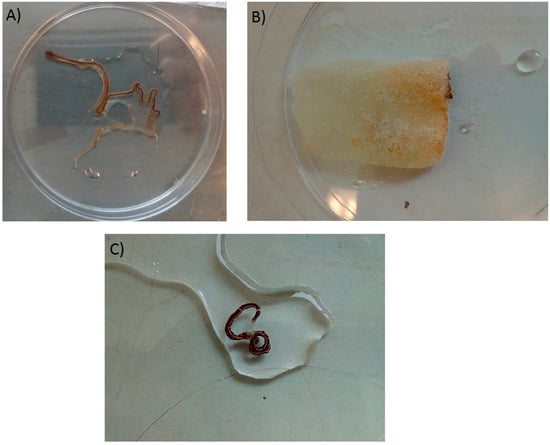 A sample of the nemertean worm 1b (Table 1) preserved in ethanol was split into two and run through parallel DNA extractions. Samples were homogenised in Lysing matrix A tubes in a Fast Prep system (MP biomedicals, Santa Ana, CA, USA, https://www.mpbio.com). DNA extraction was done with Sigma GenElute Mammalian Genomic DNA Miniprep Kit following manufacturer’s protocol (Sigma, Poole, UK, https://www.sigmaaldrich.com/). Amplification of barcoding gene Cox 1 was done by PCR, with 2 µL of DNA from each sample used as template in standard 50 µL reactions with previously published primers at 0.4 µM (mlCOIint 5′-GGWACWGGWTGAACWGTWTAYCCYCC-3′ and HCO2198 5′-TAAACTTCAGGGTGACCAAAAAATCA-3′; [94,95] respectively). PCR was run on a BioRad Tetrad thermocycler (BioRad, Liverpool, UK, www.bio-rad.com) with a single melting step of 94 °C for 2 min; 35 amplification cycles of 94 °C for 30 s, 45 °C for 30 s and 72 °C for 1 min; and a final elongation step at 72 °C for 5 min [94]. Amplified samples were cleaned by Wizard SV Gel and PCR Clean-Up System according to manufacturer’s protocol (Promega, Madison, WI, USA, https://www.promega.co.uk) before being sent for single read sanger sequencing at Eurofins genomics (Eurofins genomics, Ebersberg, Germany, https://www.eurofinsgenomics.eu). DNA sequences were trimmed manually to remove primer sequence contamination and any poor-quality data before being run through blastn against the nr database.