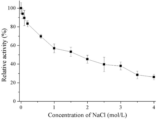 Effects of NaCl on the activity of recombinant Gal. Activity with 0 M NaCl was set as 100% with a specific activity of 445.3 U/mg.