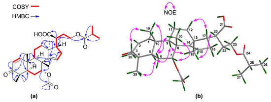 (a) Key 1H‒1H COSY and HMBC correlations for 6; (b) Selected NOE interactions for 6.