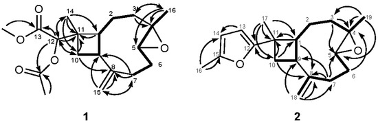- Chen, S.P.; Su, J.H.; Ahmed, A.F.; Dai, C.F.; Wu, Y.C.; Sheu, J.H. Xeniaphyllane-derived terpenoids from the Formosan soft coral Sinularia gibberosa. Chem. Pharm. Bull. 2007, 55, 1471–1475. [Google Scholar] [CrossRef] [PubMed]