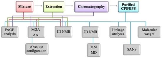 General flow diagram for the characterization of polysaccharide primary and secondary structures performed during each step of purification.