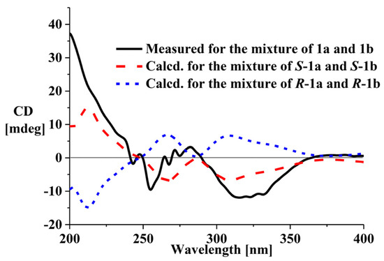 The NMR data of 1a and 1b were nearly identical and the only significant differences between 1a and 1b were the chemical shifts of two carbonyls (δC-2 166.4/164.5, δC-4 183.3/185.8) (Table 1). These data indicated that 1a and 1b were a pair of rapidly interconverting E/Z geometric isomers in solution. Bripiodionen and apiodionen also displayed a similar equilibrium [14,15]. We carried out theoretical calculations of energy for stable conformers of 1a and 1b. The preliminary conformational distribution search was performed with the HyperChem software (Hyperchem Release 7.5, Hypercube, Inc., Gainesville, FL, USA). The corresponding minimum geometries were further fully optimized by using DFT at the B3LYP/6-31G(d) level as implemented in the Gaussian 03 program package (Gaussian 03 Revision E.01. Gaussian, Inc., Wallingford, CT, USA) [20]. The results (Table S1) showed that the stable conformers (1a-1, 1a-2) of 1a possessed lower molecular energy than those of 1b (1b-1, 1b-2), and 1a and 1b accounted for 70.3% and 29.7% equilibrium populations, respectively, which was very close to their population in DMSO-d6 solution. These data confirmed the E-Δ3(6) and Z-Δ3(6) for 1a and 1b, respectively. To establish the absolute configuration of 1a and 1b, electrostatic circular dichroism (ECD) spectra for the mixture of R-1a and R-1b, S-1a and S-1b were computed using the stable conformers obtained by the time-dependent density functional theory (TDDFT) [B3LYP/6-31G(d)] method [13], respectively. The measured ECD spectrum of the mixture matched well with calculated ECD spectrum for the mixture of S-1a and S-1b, indicating that the absolute configurations of 1a and 1b were both 10S (Figure 3).
