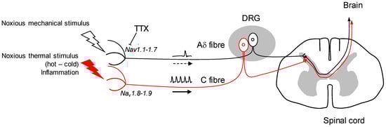 - Dib-Hajj, S.D.; Cummins, T.R.; Black, J.A.; Waxman, S.G. Sodium channels in normal and pathological pain. Annu. Rev. Neurosci. 2010, 33, 325–347. [Google Scholar] [CrossRef] [PubMed]