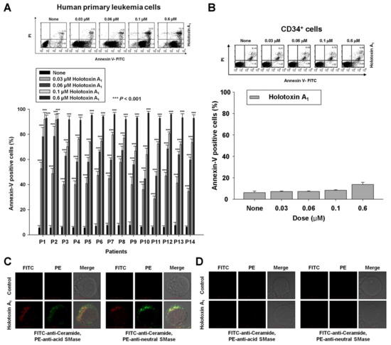 2.3. Holotoxin A1 Induces Apoptosis via Activation of Acid and Neutral SMases in Primary Human Leukemia Cells, But not in Normal Human Hematopoietic Progenitor Cells (CD34+ Cells)