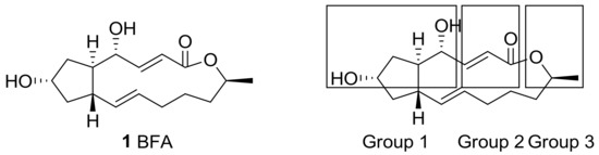 Structure of brefeldin A (BFA) and groups of its analogs based on structural modifications.