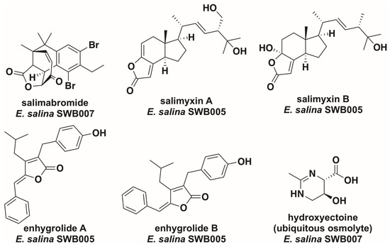 Enhygromyxa salina secondary metabolites and hydroxyectoine [20,43,44].