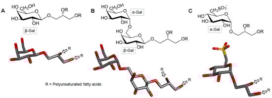 - Hölzl, G.; Dörmann, P. Structure and function of glycoglycerolipids in plants and bacteria. Prog. Lipid Res. 2007, 46, 225–243. [Google Scholar] [CrossRef] [PubMed]