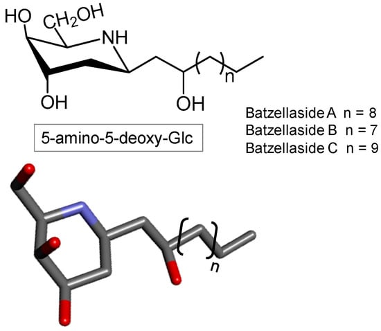 - Segraves, N.L.; Crews, P. A Madagascar Sponge Batzella sp. as a Source of Alkylated Iminosugars. J. Nat. Prod. 2005, 68, 118–121. [Google Scholar] [CrossRef] [PubMed]