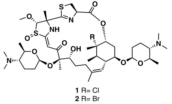 - Schulze, C.J.; Donia, M.S.; Siqueira-Neto, J.L.; Ray, D.; Raskatov, J.A.; Green, R.E.; McKerrow, J.H.; Fischbach, M.A.; Linington, R.G. Genome-directed lead discovery: Biosynthesis, structure elucidation, and biological evaluation of two families of polyene macrolactams against Trypanosoma brucei. ACS Chem. Biol. 2015, 10, 2373–2381. [Google Scholar] [CrossRef] [PubMed]