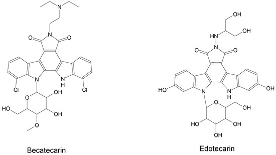 Chemical structures of the rebeccamycin derivatives becatecarin and edotecarin [92].