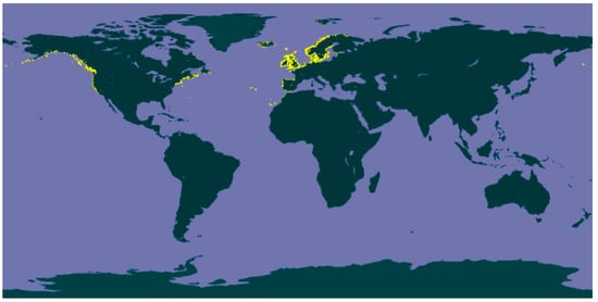 Geographical distribution of Fucus L. © OpenStreetMap contributors (licensed under Open Data Commons Open Database License); GBIF.org (25 July 2018) GBIF Occurrence Download https://doi.org/10.15468/dl.l5mbpr (licensed under CC BY 4.0).