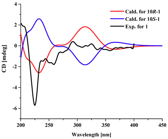 Comparison between calculated and experimental electronic circular dichroism (ECD) spectra of compound 1.