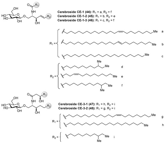 Structures of the cerebrosides CE (44–48).