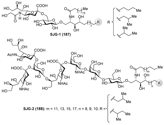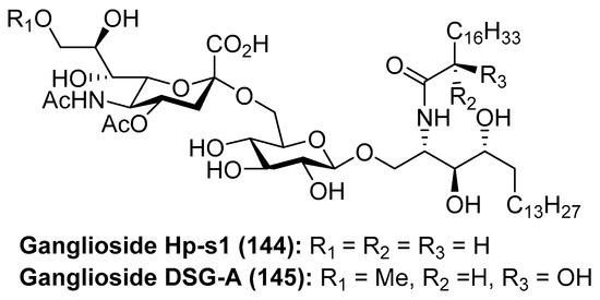 Structures of ganglioside Hp-s1 (144) and DSG-A (145).