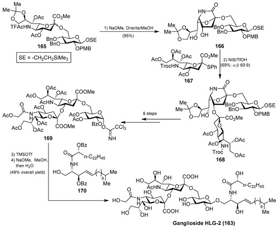 - Iwayama, Y.; Ando, H.; Ishida, H.; Kiso, M. A First Total Synthesis of Ganglioside HLG-2. Chem. Eur. J. 2009, 15, 4637–4648. [Google Scholar] [CrossRef] [PubMed]