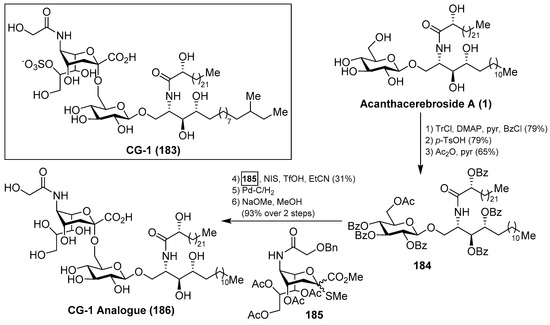 - Guang, J.; Rumlow, Z.A.; Wiles, L.M.; O’Neill, S.; Walczak, M.A. Sulfated Liposaccharides Inspired by Telomerase Inhibitor Axinelloside A. Tetrahedron Lett. 2017, 58, 4867–4871. [Google Scholar] [CrossRef]