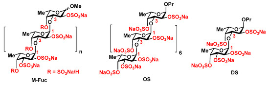 Modified fucoidan M-Fuc [14] and related synthetic octasaccharide OS [15,16] and disaccharide DS [17,18].