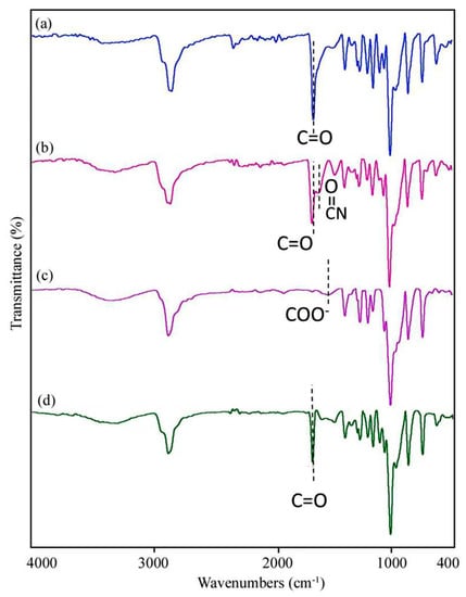 - ElZein, T.; Nasser-Eddine, M.; Delaite, C.; Bistac, S.; Dumas, P. FTIR study of polycaprolactone chain organization at interfaces. J. Colloid Interface Sci. 2004, 273, 381–387. [Google Scholar] [CrossRef] [PubMed]