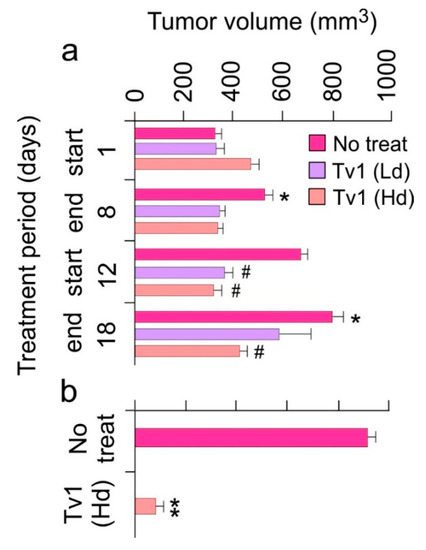 2.3. Tv1 Has Antitumor Activity in an Allograft Tumor Mouse Model