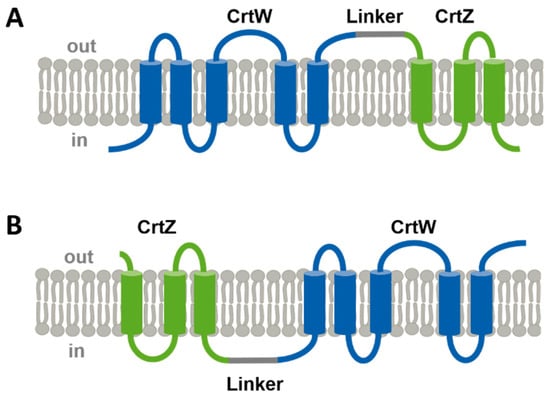 - Nogueira, M.; Enfissi, E.M.A.; Welsch, R.; Beyer, P.; Zurbriggen, M.D.; Fraser, P.D. Construction of a fusion enzyme for astaxanthin formation and its characterisation in microbial and plant hosts: A new tool for engineering ketocarotenoids. Metab. Eng. 2019, 52, 243–252. [Google Scholar] [CrossRef]