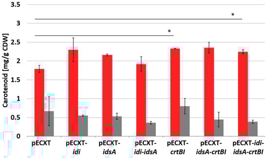 - Heider, S.A.; Peters-Wendisch, P.; Wendisch, V.F. Carotenoid biosynthesis and overproduction in Corynebacterium glutamicum. BMC Microbiol. 2012, 12, 198. [Google Scholar] [CrossRef] [PubMed]