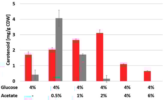 2.3. Co-utilization of Glucose and Potassium Acetate Improved Astaxanthin Production in Minimal Medium