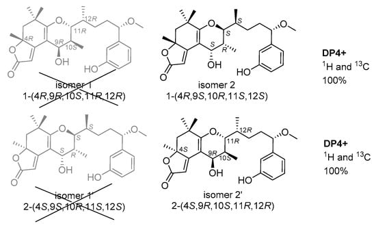 - Grimblat, N.; Zanardi, M.M.; Sarotti, A.M. Beyond DP4: An Improved Probability for the Stereochemical Assignment of Isomeric Compounds using Quantum Chemical Calculations of NMR Shifts. J. Org. Chem. 2015, 80, 12526–12534. [Google Scholar] [CrossRef]