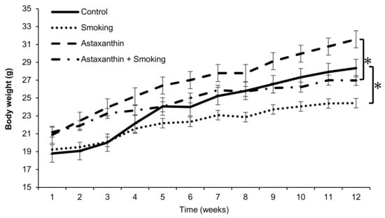 Chicago/Turabian StyleKubo, Hiroaki, Kazuhisa Asai, Kazuya Kojima, Arata Sugitani, Yohkoh Kyomoto, Atsuko Okamoto, Kazuhiro Yamada, Naoki Ijiri, Tetsuya Watanabe, Kazuto Hirata, and et al. 2019. "Astaxanthin Suppresses Cigarette Smoke-Induced Emphysema through Nrf2 Activation in Mice" Marine Drugs 17, no. 12: 673. https://doi.org/10.3390/md17120673