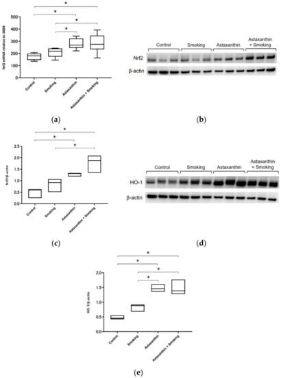 2.2. Nrf2 and HO-1 Expression Levels Were Increased in Astaxanthin-Fed Mice