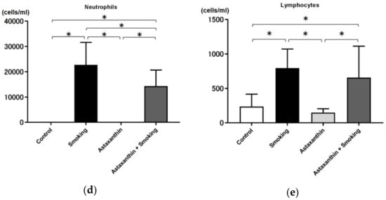 2.3. Astaxanthin Ameliorated Inflammatory Cell Increase in BALF of Cigarette Smoke-Induced COPD