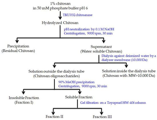 Flow chart for the isolation of COS produced by hydrolyzing chitosan with TKU032 chitosanase
