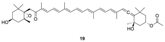 Marine natural product Fucoxanthin (19) derived from edible brown algae.