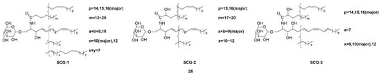 Marine natural product glucocerebrosides (SCG-1, SCG-2, and SCG-3) (28) derived from Cucumaria frondosa.