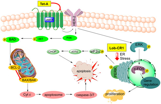 - Vellanki, S.H.; Cruz, R.G.B.; Jahns, H.; Hudson, L.; Sette, G.; Eramo, A.; Hopkins, A.M. Natural compound Tetrocarcin-A downregulates Junctional Adhesion Molecule-A in conjunction with HER2 and inhibitor of apoptosis proteins and inhibits tumor cell growth. Cancer Lett. 2019, 440–441, 23–34. [Google Scholar] [CrossRef] [PubMed]
