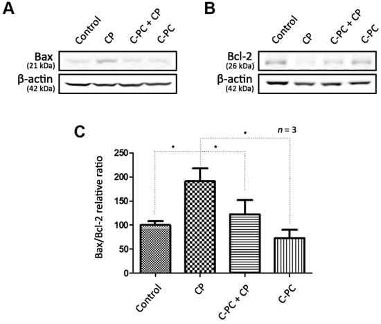 2.3. C-PC Regulates the Changes in Bax and Bcl-2 Protein Levels Caused by Cisplatin-induced ROS Accumulation