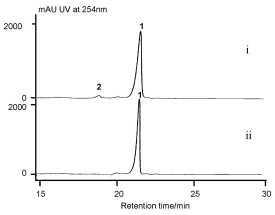 HPLC analysis of S. costaricanus strains fermentation extracts. (i) WT producer; (ii) ∆acnP mutant. 1, actinomycin D; 2, actinomycin Xoβ.