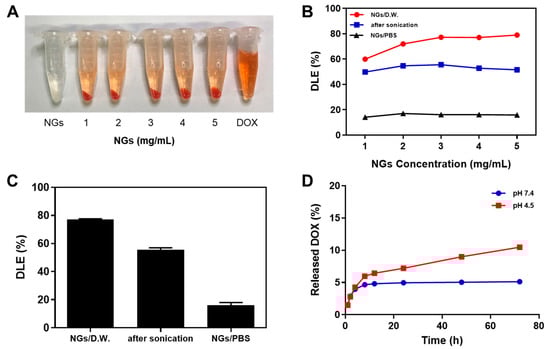 D0: Initial amount of DOX added to the NGs. D1: Amount of DOX in supernatant after centrifugation.