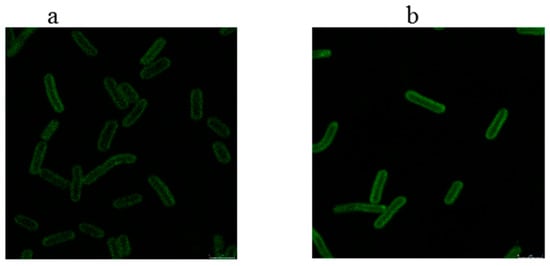 Real-time PCR was carried out on CFX96 Touch Real-Time PCR Detection System (Bio-Rad, Hercules, CA, USA) using SYBR Premix Ex TaqTMII (TaKaRa Biotech Co., Dalian, China). The reference gene was used as an internal standard, amplified with the rnpB-F/rnpB-R primers (Table S1, Supplementary Materials). Real-time PCR was conducted following the procedure: 95 °C for 30 s before performing 40 cycles of 95 °C for 5 s and 60 °C for 45 s, and a melting step at 60 °C–95 °C. PCR efficiency of each gene was calculated by relative standard curve using sequential dilutions of the cDNA. The 2−ΔΔCT method [53] was applied for the target gene expression calculation.
