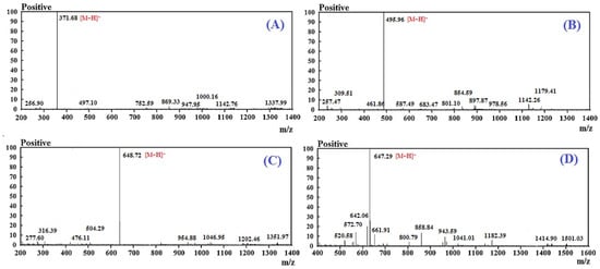 Mass spectrogram of RSHP-A (A), RSHP-B (B), RSHP-C (C), and RSHP-D (D).