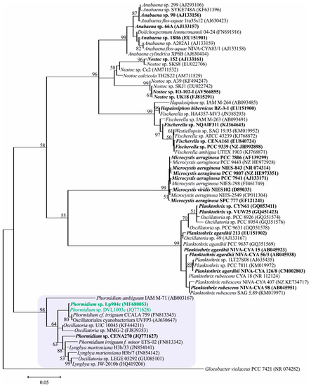 - Izaguirre, G.; Jungblut, A.D.; Neilan, B.A. Benthic cyanobacteria (Oscillatoriaceae) that produce microcystin-LR, isolated from four reservoirs in southern California. Water Res. 2007, 41, 492–498. [Google Scholar] [CrossRef]