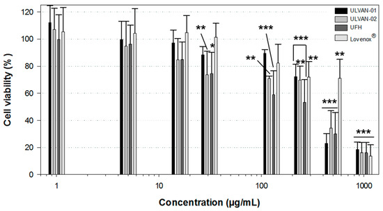 2.5. Effect of ULVAN-01 and ULVAN-02 on Cell Viability