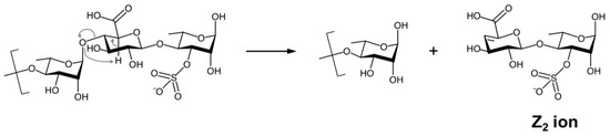 | Oligosaccharide Sequence | Ion (m/z) | Ionization | Molecular Formula | Symbolic Representation of Oligosaccharide Fragments (a) (CFG Nomenclature (b)) Rha, GlcA (or IdoA) (c) Glc (or Gal) (c), XylS = Sulfate Group | ||