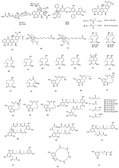 Polyketides 31–73, isolated from marine microbes.