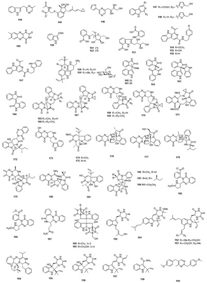 Alkaloids 144-199 from marine microbes.