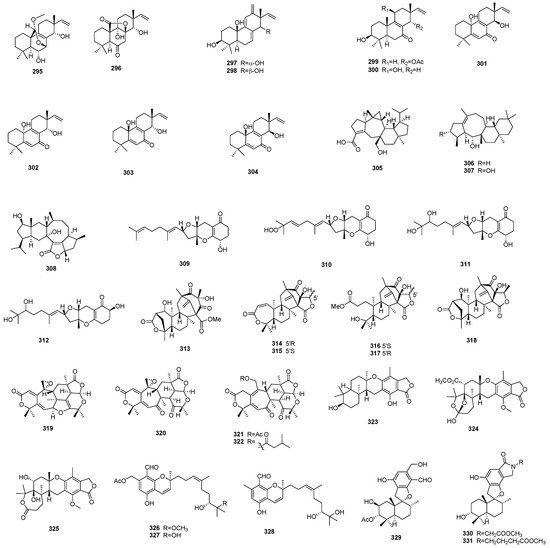 Terpenoids 295–331 from marine-derived microbes.