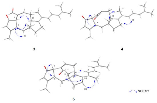 Key NOESY correlations of 3–5.