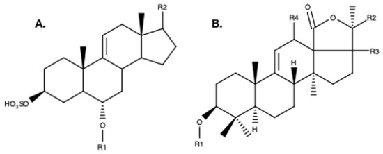 Lanostane derivatives without the lactone ring or containing a 18(16)-lactone fragment instead of the 18(20)-lactone belong to the so-called non-holostane glycosides. The aglycones of most sea cucumber saponins belong to the holostane series and only about 40 or so of the described glycosides are non-holostane derivatives (i.e., they do not have an 18(20)-lactone fragment in their aglycone moiety) [53,60,64].
