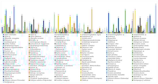 The top 10 genera reported for new MNPs are Achantostrongylophora (4.4%), Xestospongia (3.6%), Sinularia (3.4%), Apysinella, Theonella and Strepsichordaia (each 2.9%), Plakortis, Petrosia, Spongia, Melophlus (each 2.6%), Agelas, Rhabdastrella, and Lissoclinum (each 2.5%). Unknown genera were the sources of 6.2% of new MNPs. Symbiotic relationships are generally found between sponges and fungi, algae and fungi, and dinoflagellates and acoel flatworms. The list of Indonesian marine organisms producing new MNPs is described in Figure 6.